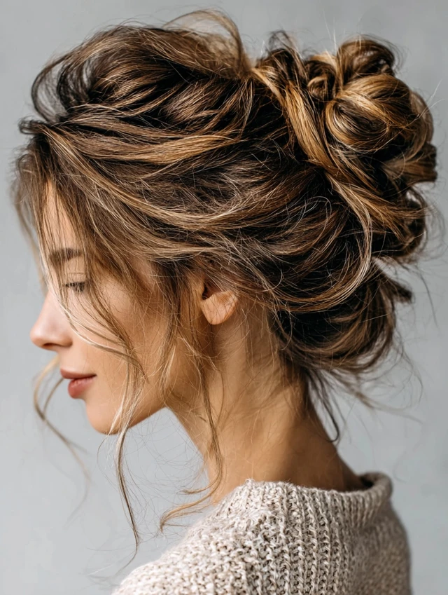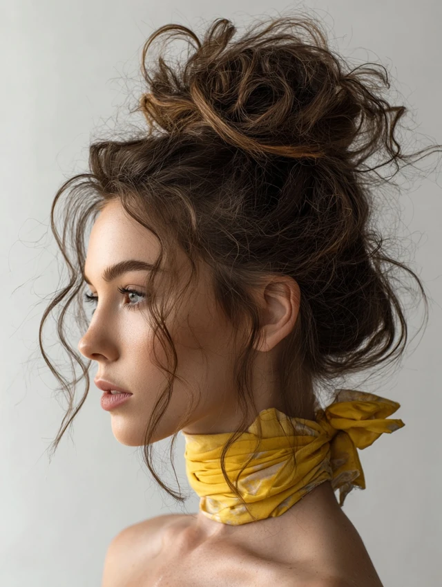 4. Messy Bun with Secure Wrap
