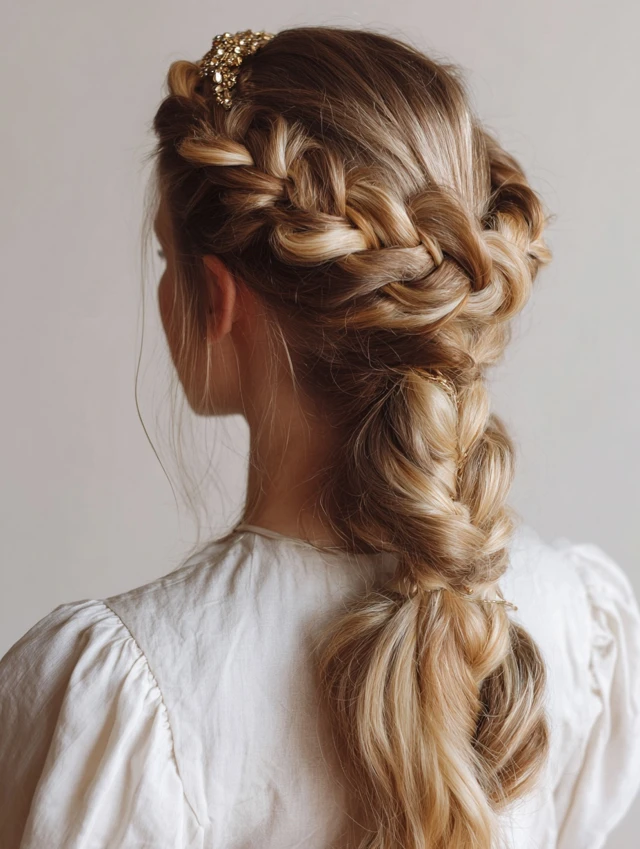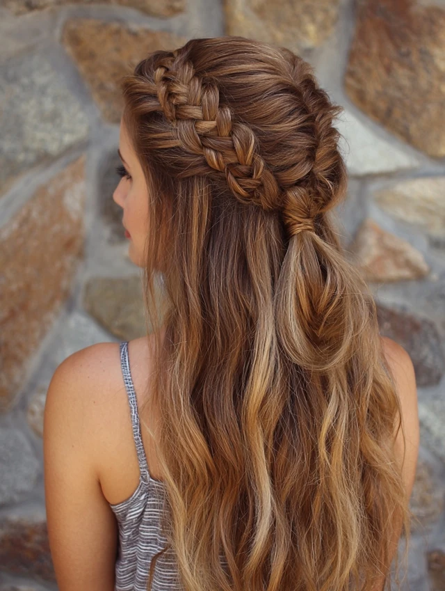 Perfect for medium or curly hair — you get the top half secured with braids while the rest stays free and comfortable.