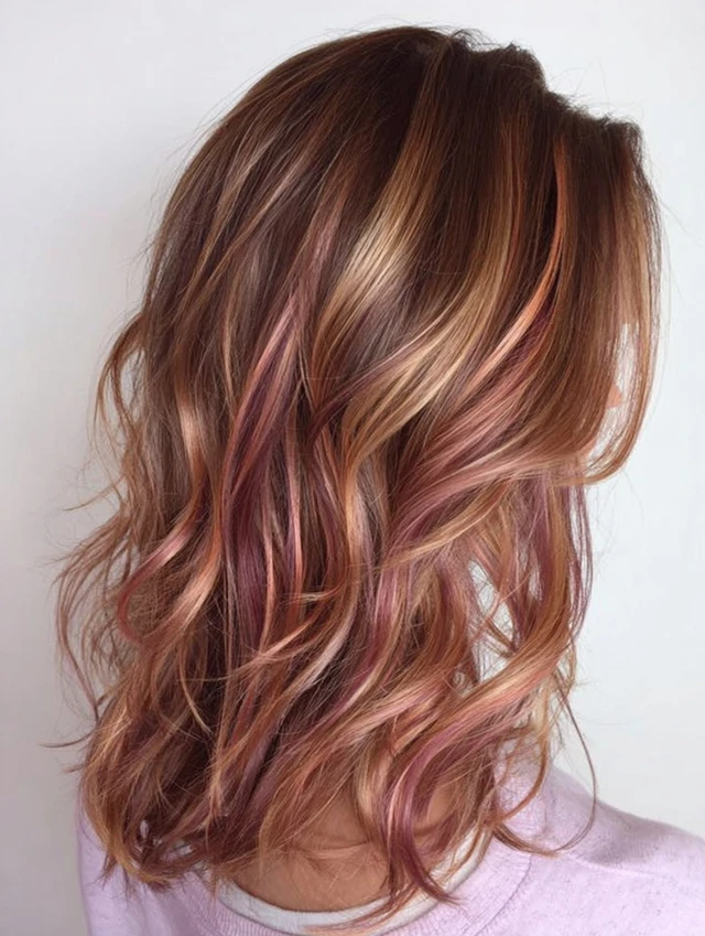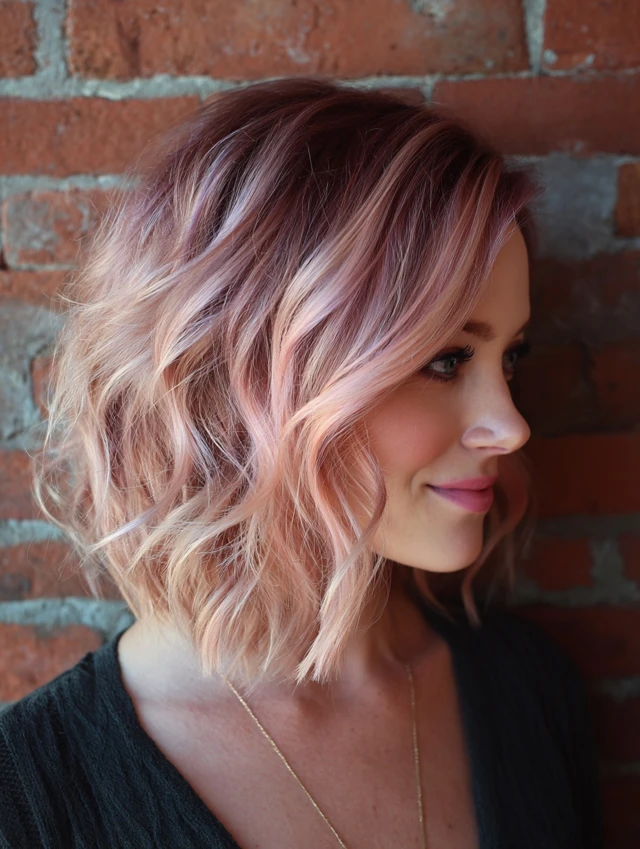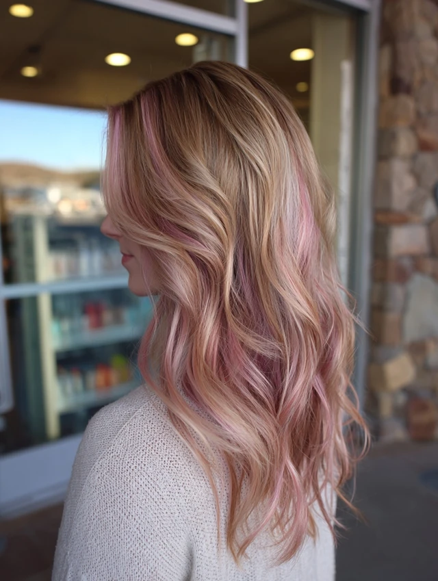 Soft pastel streaks or rose-gold highlights give a playful, trendy touch — perfect for spring energy and fun vibes.
