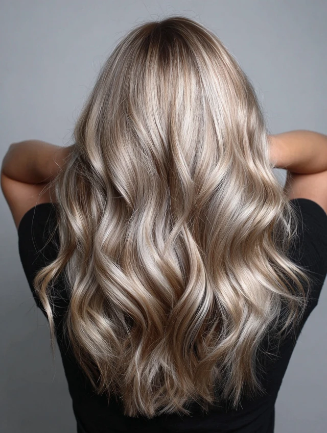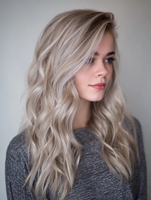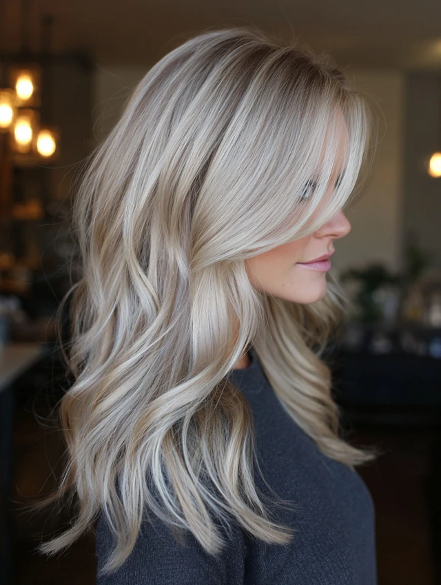 This cooler, lighter blonde — a mixture of ash and soft beige — brings a trendy, modern vibe. It works especially well if you like a more fashion-forward, chic look.