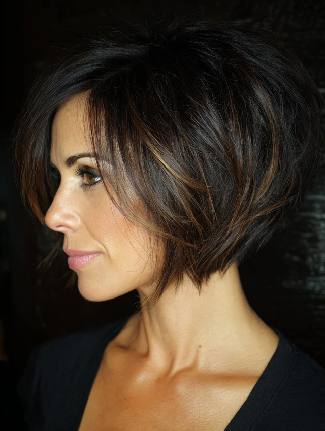 Why It Works: Layers stacked in the back create lift and a rounded shape that visually thickens hair.