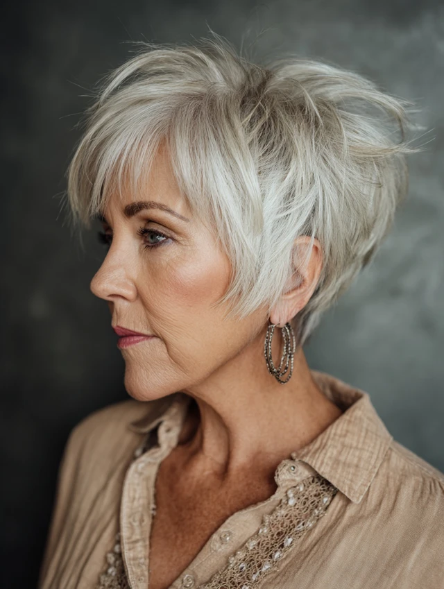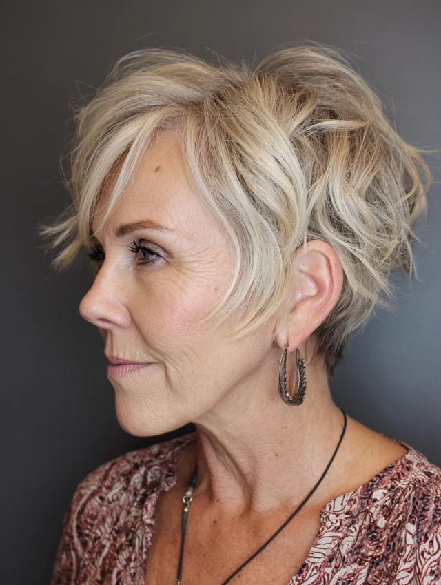 Short haircuts work beautifully for women over 50 because they adapt to changing hair texture while enhancing facial structure.
