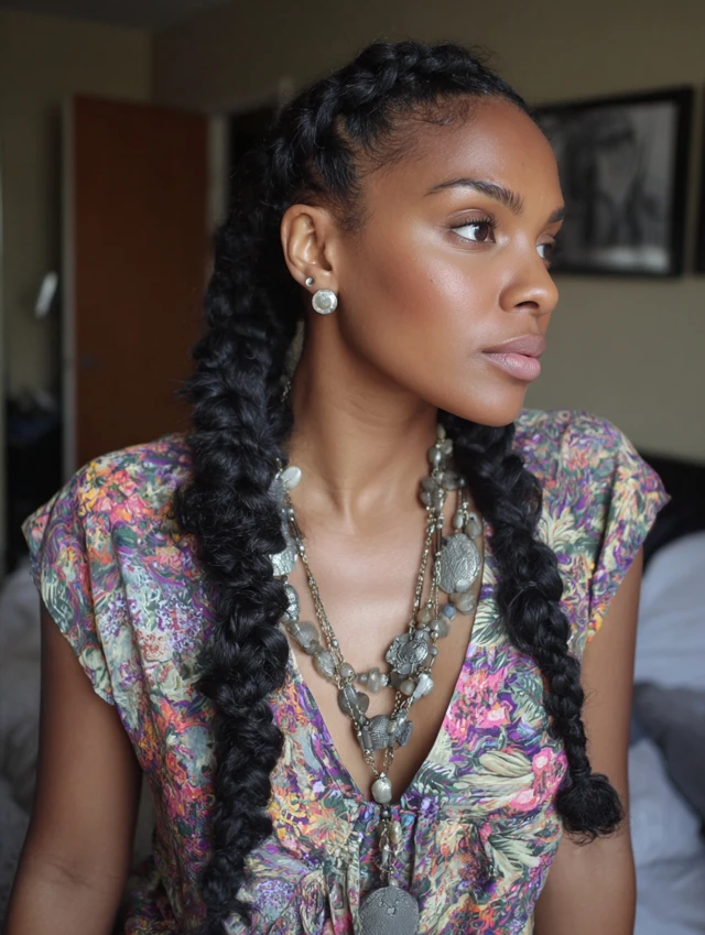 Braids create soft texture and keep hair neat without styling tools.