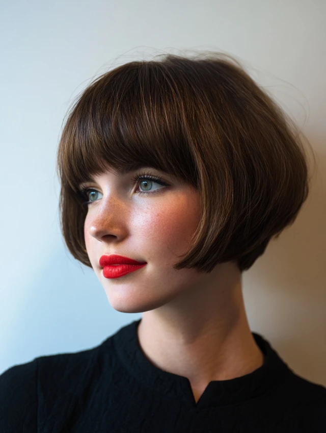 - Front Fringe: Straight-across bangs at brow or eyelash level.