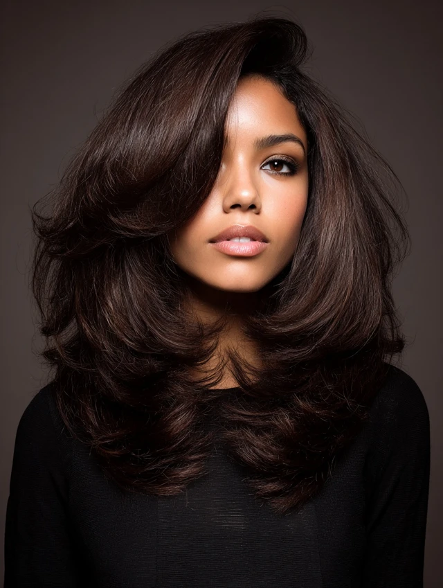 - Face-Framing: Feathered layers soften facial features beautifully.