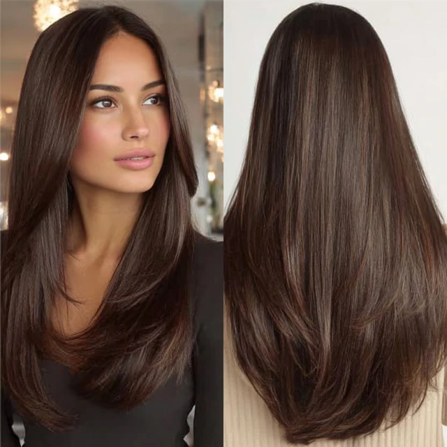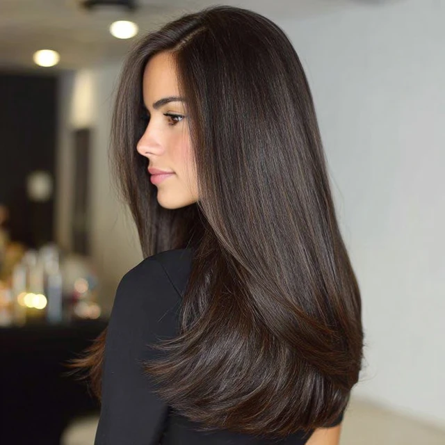 - Finish with a flat iron for extra sleekness and a light gloss spray.