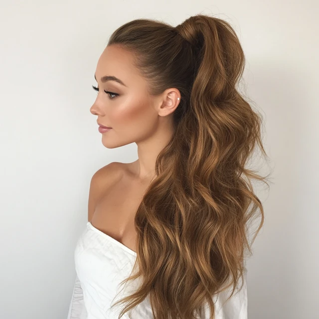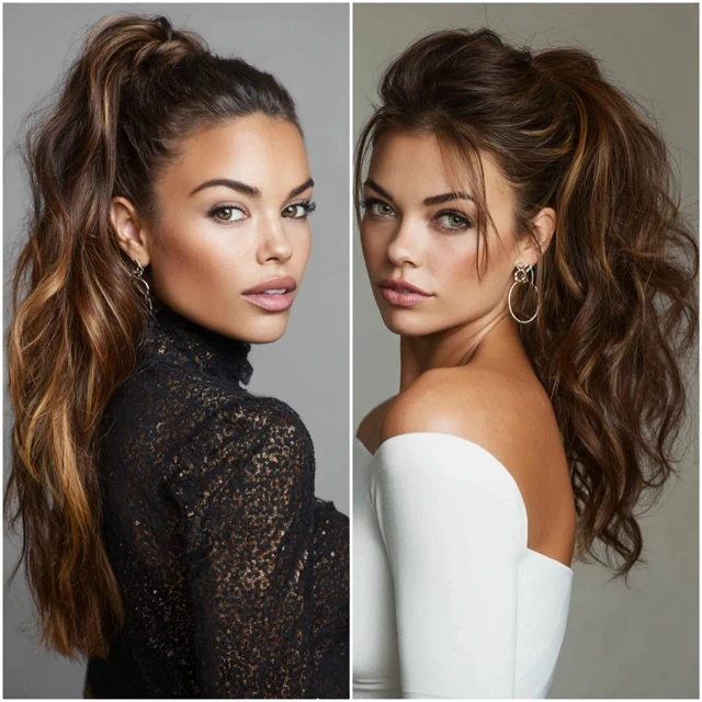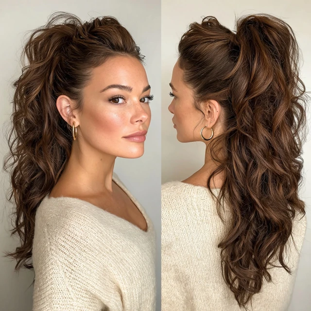 Why It Works: Elevates your look instantly and showcases the thickness without overwhelming your face. The high pony is bold, sleek, and youthful.