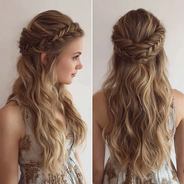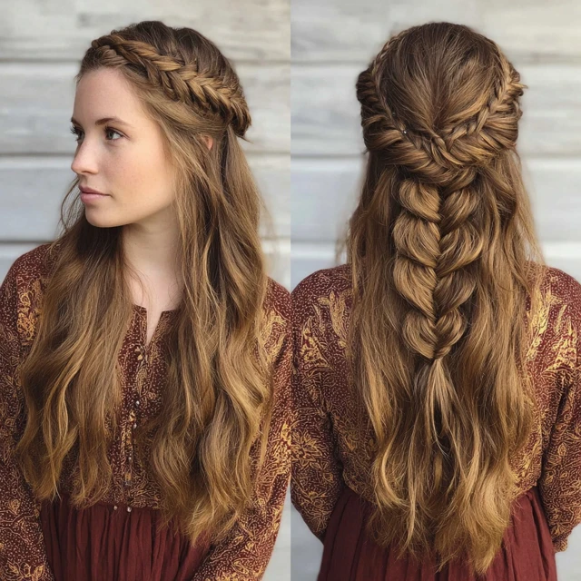 Why It Works: Combines the elegance of long hair with the structure of a braid, keeping weight off your face while showing off length.