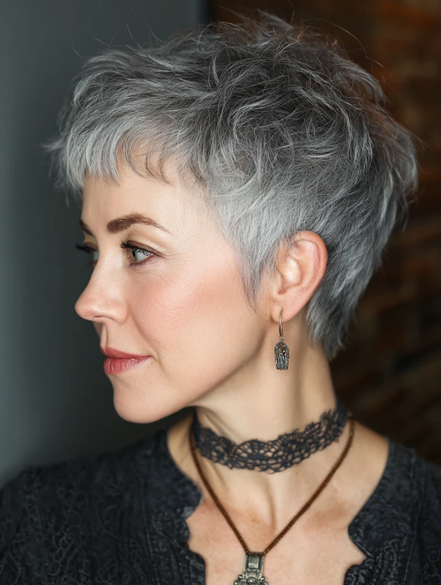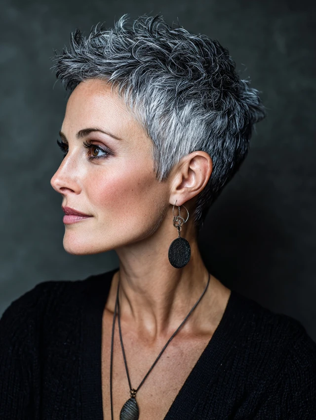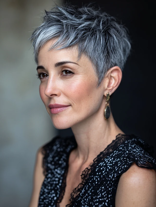 1. Salt and Pepper Pixie Cut