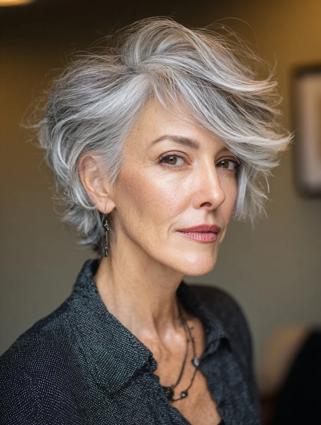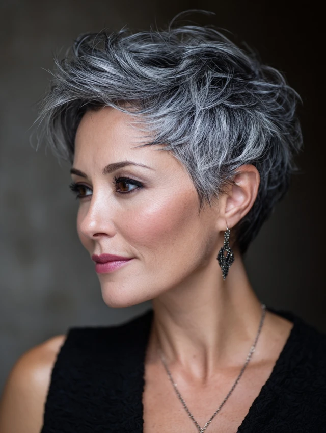 Salt and pepper hair looks best when embraced fully. Choose a cut that feels authentic, keep styling simple, and let your natural color shine.