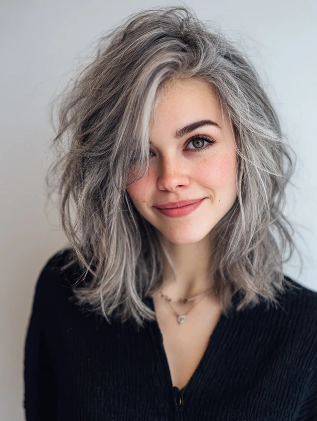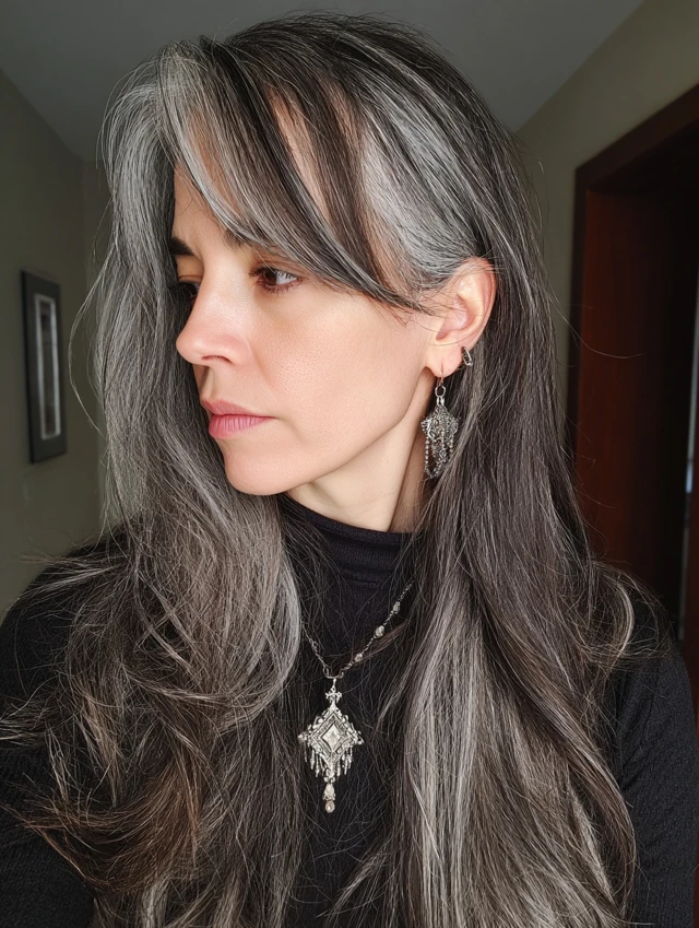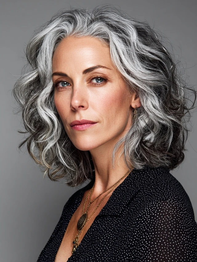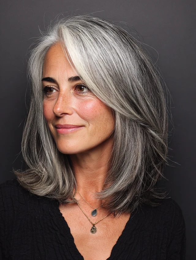 Why It Works: This length offers versatility while showcasing the beautiful blend of gray and darker strands.