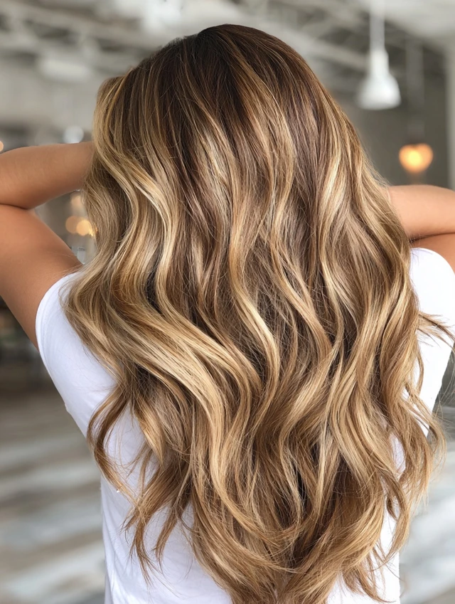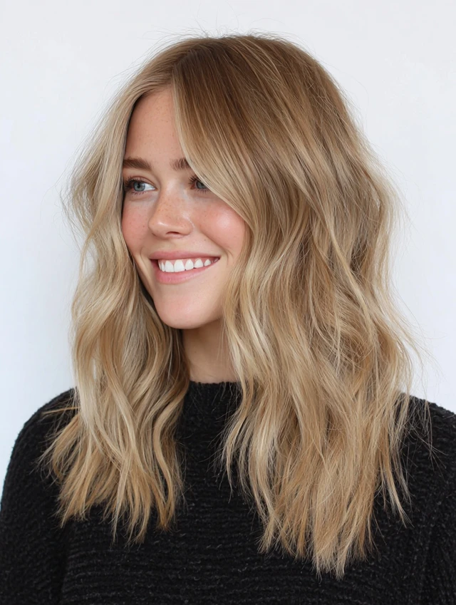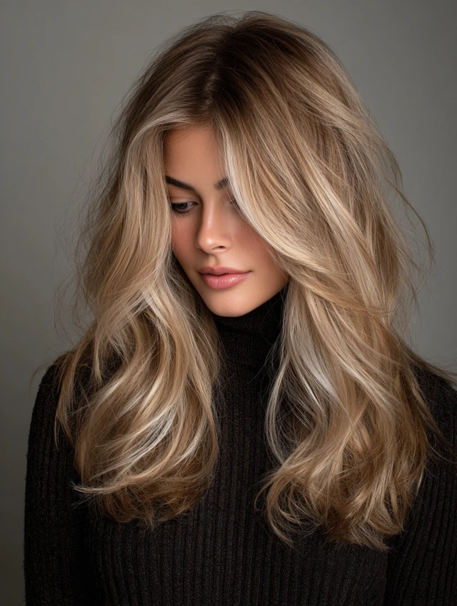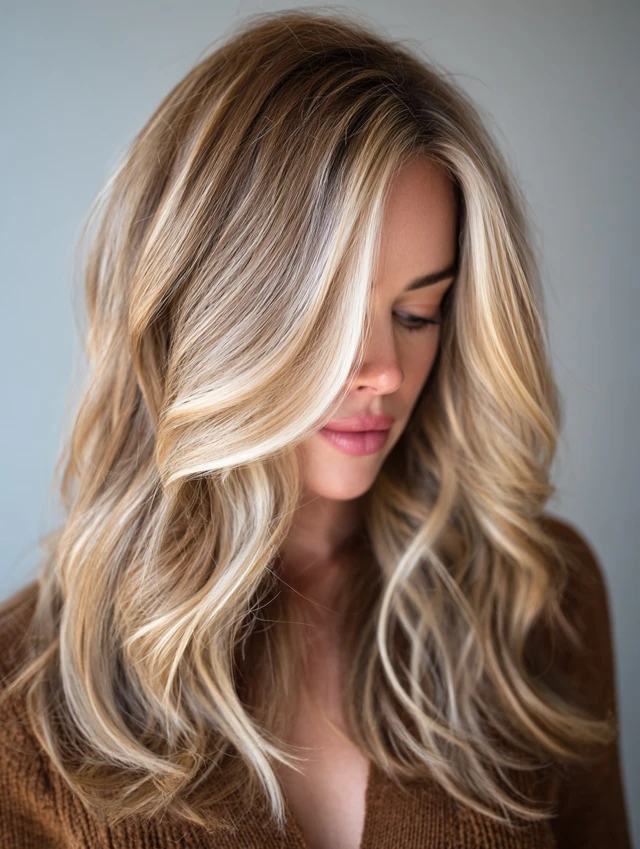 This is the most popular way to wear sandy blonde — soft, painted highlights that blend into your natural color seamlessly.